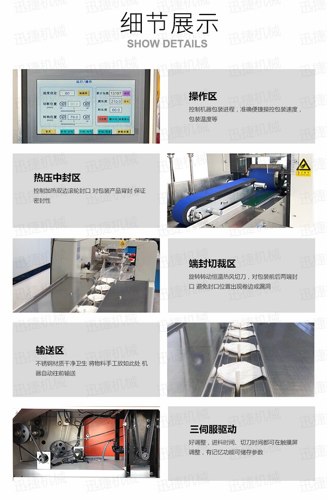 一次性口罩包裝設(shè)備口罩包裝機可用于餅干、月餅、蛋黃派、米餅、雪糕、方便面、巧克力等塊狀產(chǎn)品的包裝,特別適合于小批量單一產(chǎn)品的包裝。